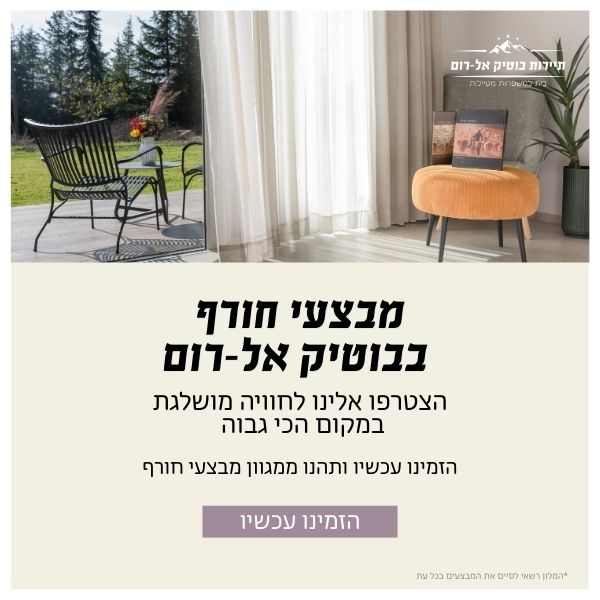למי שמחפש משהו מעבר לחופשה רגילה – מלון בוטיק ברמת הגולן באל-רום הוא היעד המושלם. כאן, הטבע הפראי, השקט והשלווה נפגשים עם סטנדרט אירוח מוקפד, ויוצרים חוויה שתישאר עמכם הרבה אחרי שתעזבו.